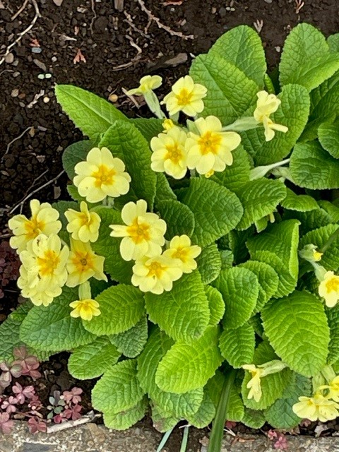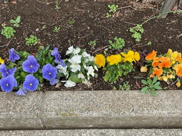 ボケやフリージア、パンジー、サクラソウなどの花たちは、いらしてくださるご利用者の皆様のために、デイサービスの職員が仕事を終えたあとに自ら植えたものです。