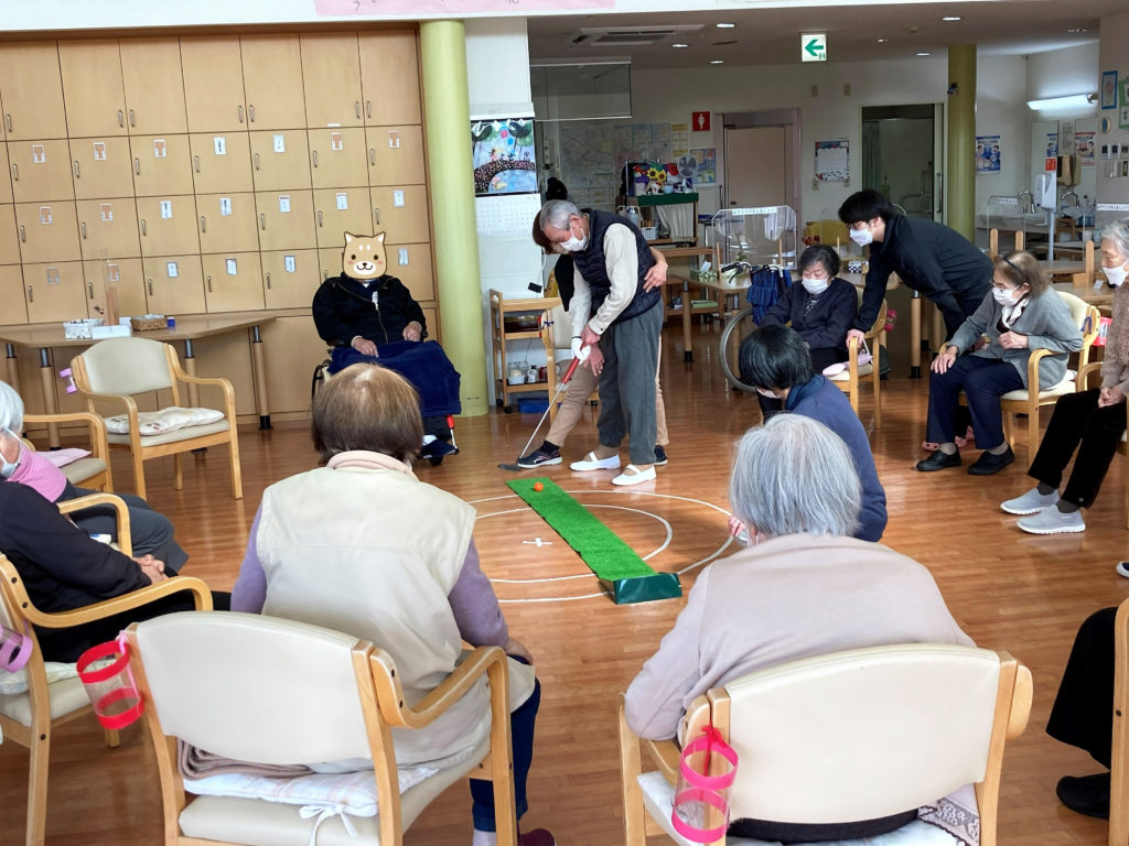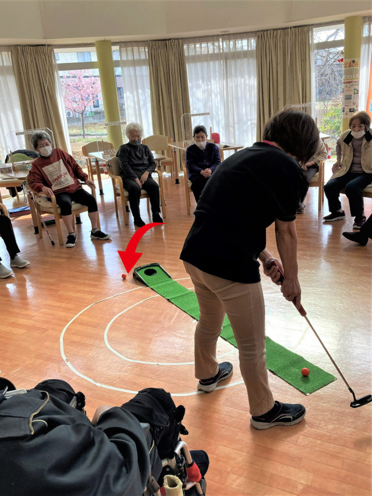 ある日の午後、なんだかレクリエーションが盛り上がってる!と思い、カメラを片手にフロアーへ・・・「春だ!パターゴルフ!」を開催中でしたー!!