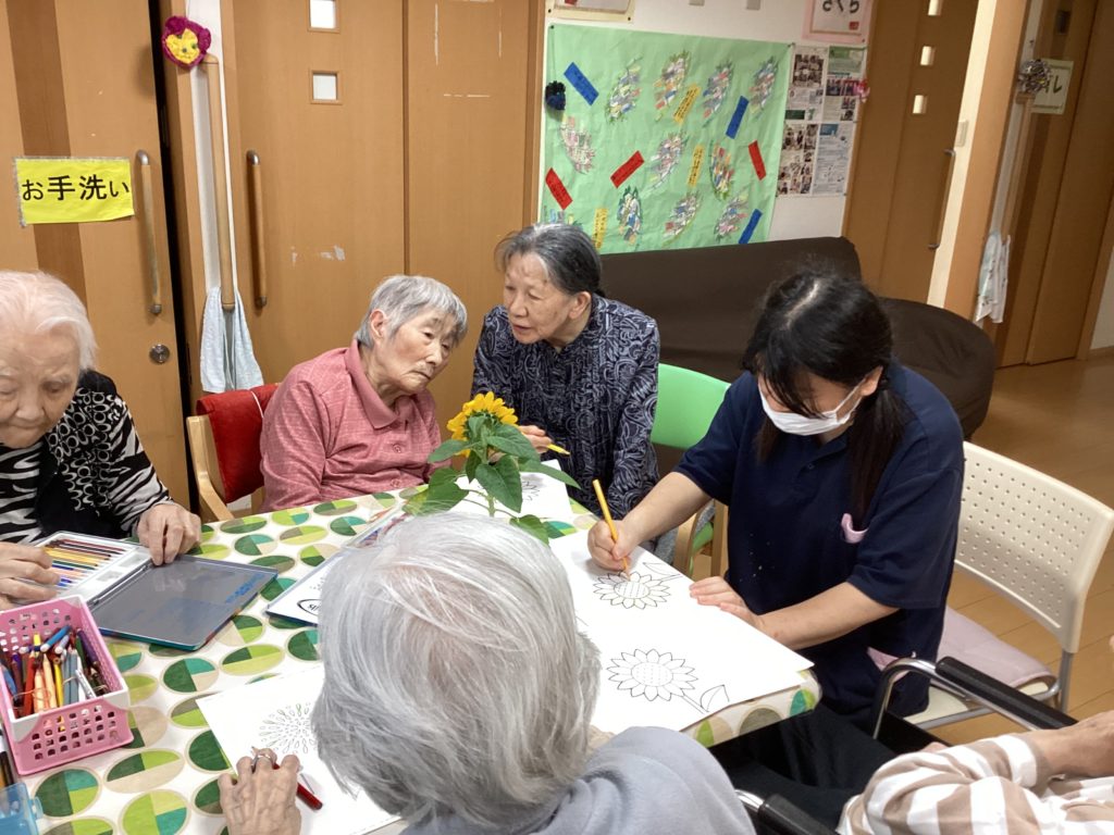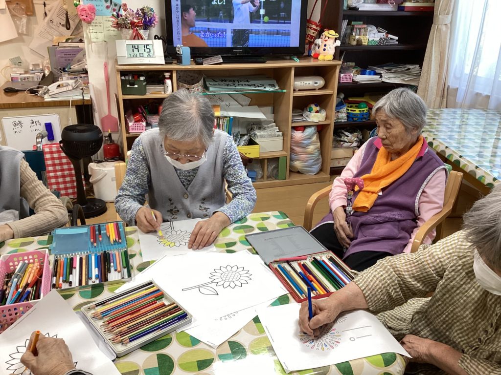 皆様一生懸命に向日葵に色を塗っていらっしゃいます(^▽^)