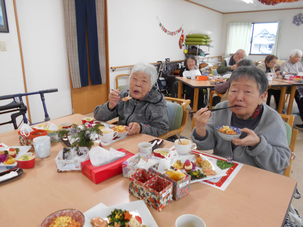 厨房の職員が前日から仕込みをして、クリスマス会用に特別メニューを用意致しました。