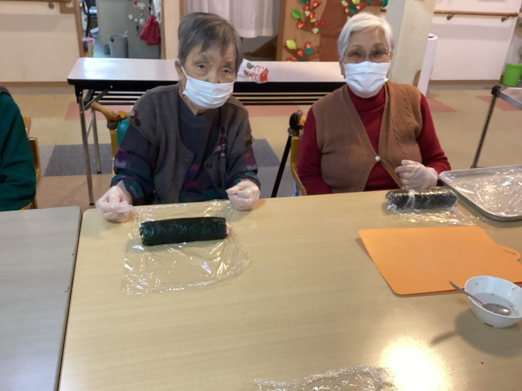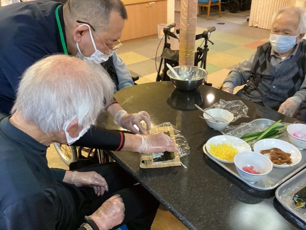 次は、おやつレクでご利用者様のリクエストにお答えして「巻き寿司」を作りました(^^♪
