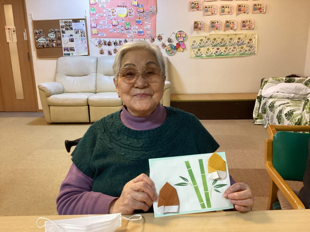 筍を折り紙で作りました~