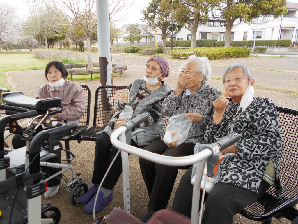 おやつを食べたり、のんびりと過ごし、ご利用者の皆様は思い思いに桜を鑑賞され大変満足して頂きました。