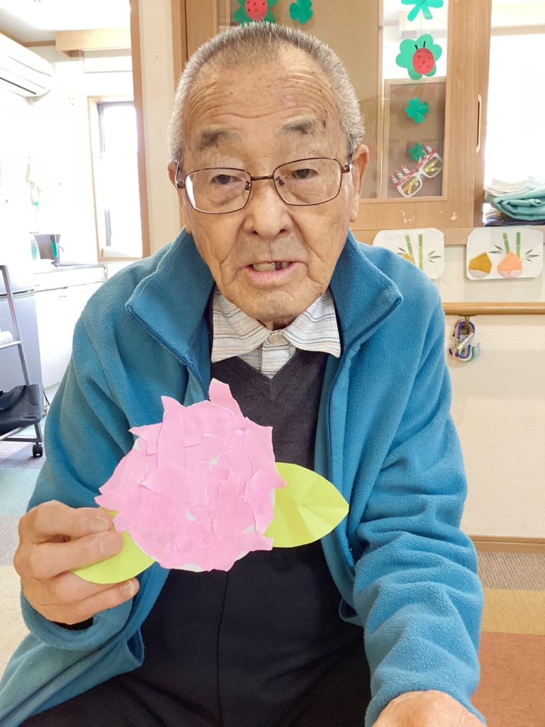 ご利用者の皆様のお好きな色を使って、色とりどりのあじさいが完成しました!(^^)!