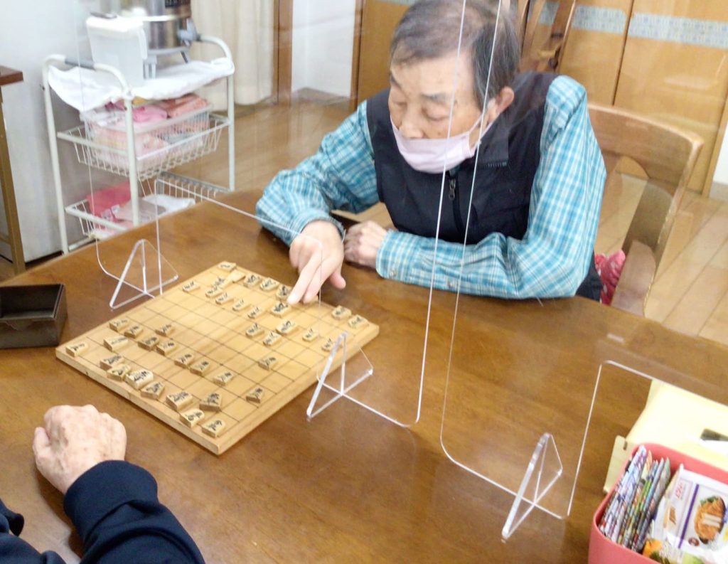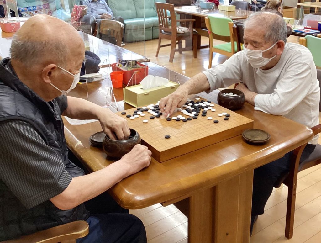 男性のご利用者様が取り組むのは、将棋、囲碁、麻雀。指先と頭の体操と楽しみながら行っています。