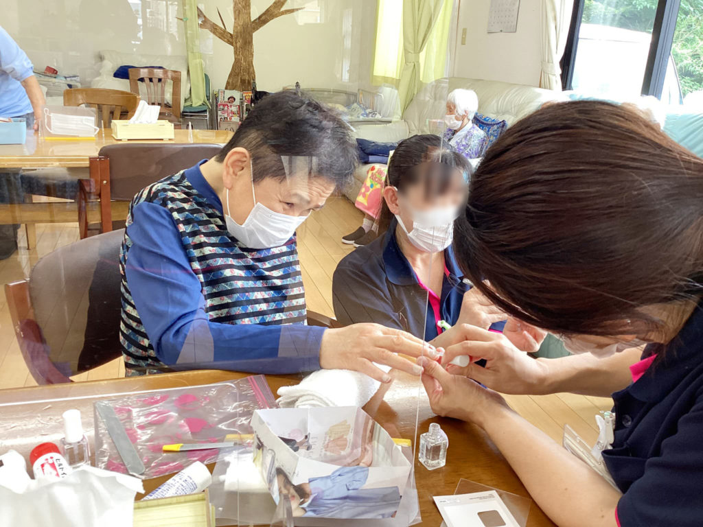 女性のご利用者様のお誕生会の際に、職員から提案をさせていただいた中で好評だったのが、お化粧や、マニキュアでした。