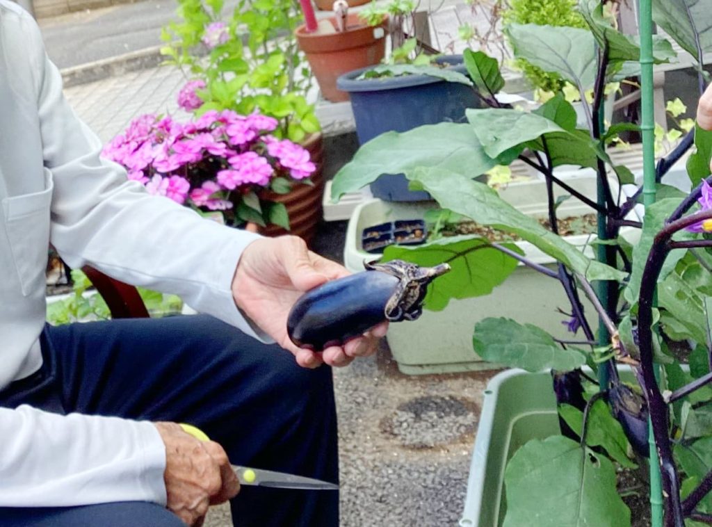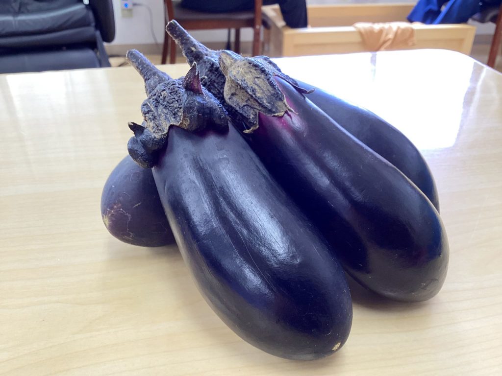 夏に向けて植えた茄子の苗は、利用者の皆様に芽かきや水やりをしていただき、ぐんぐんと成長しました。今では大きな実が収穫できるようになりました