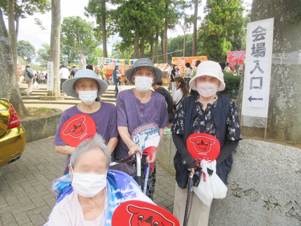 さて、話は変わりまして・・・8月24日にけやきの森公園で開催された夏祭りへご利用者の皆様と参加してきました。その様子を紹介させていただきます!