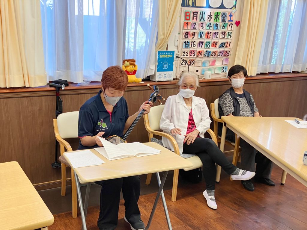 続いて、シルバー川柳、三線、木琴、太鼓などのプログラムを楽しんでいただきました。