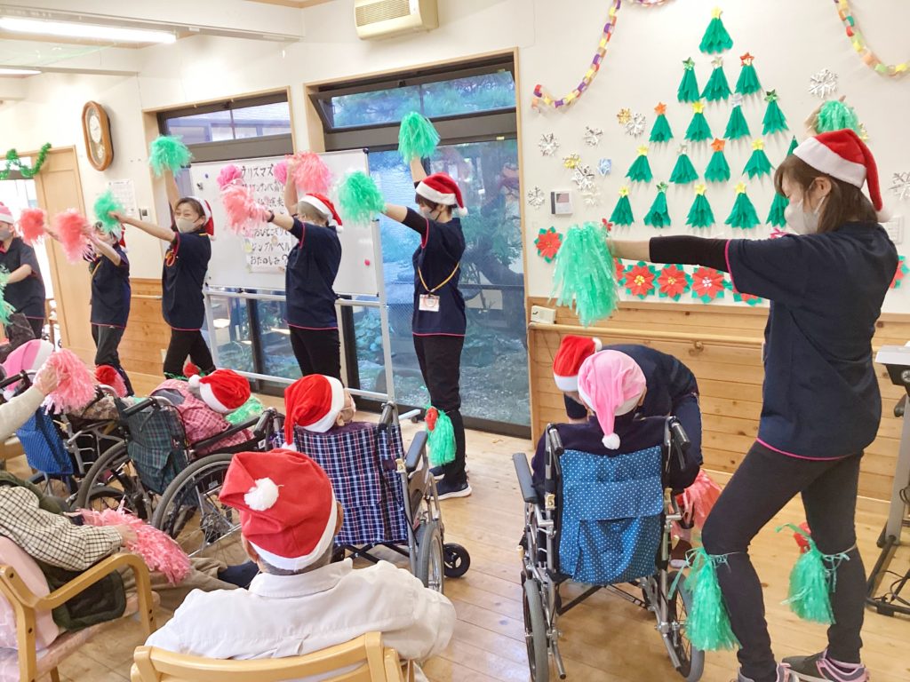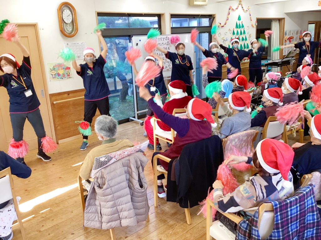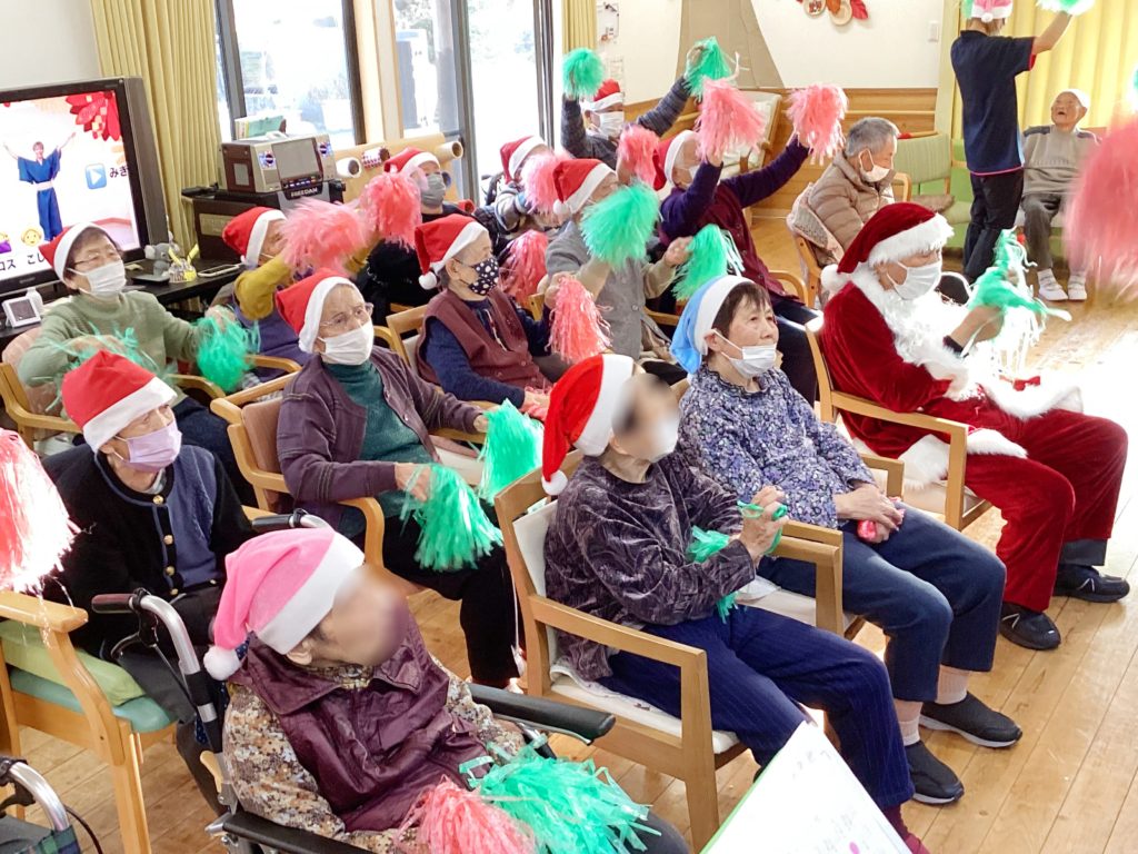 利用者様もサンタさんもポンポンをふって一緒に歌って下さいました♪