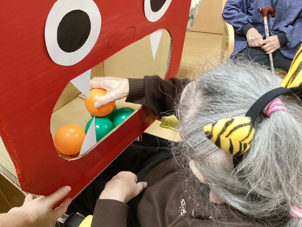 今回は豆の代わりにボールで鬼退治を行いました!