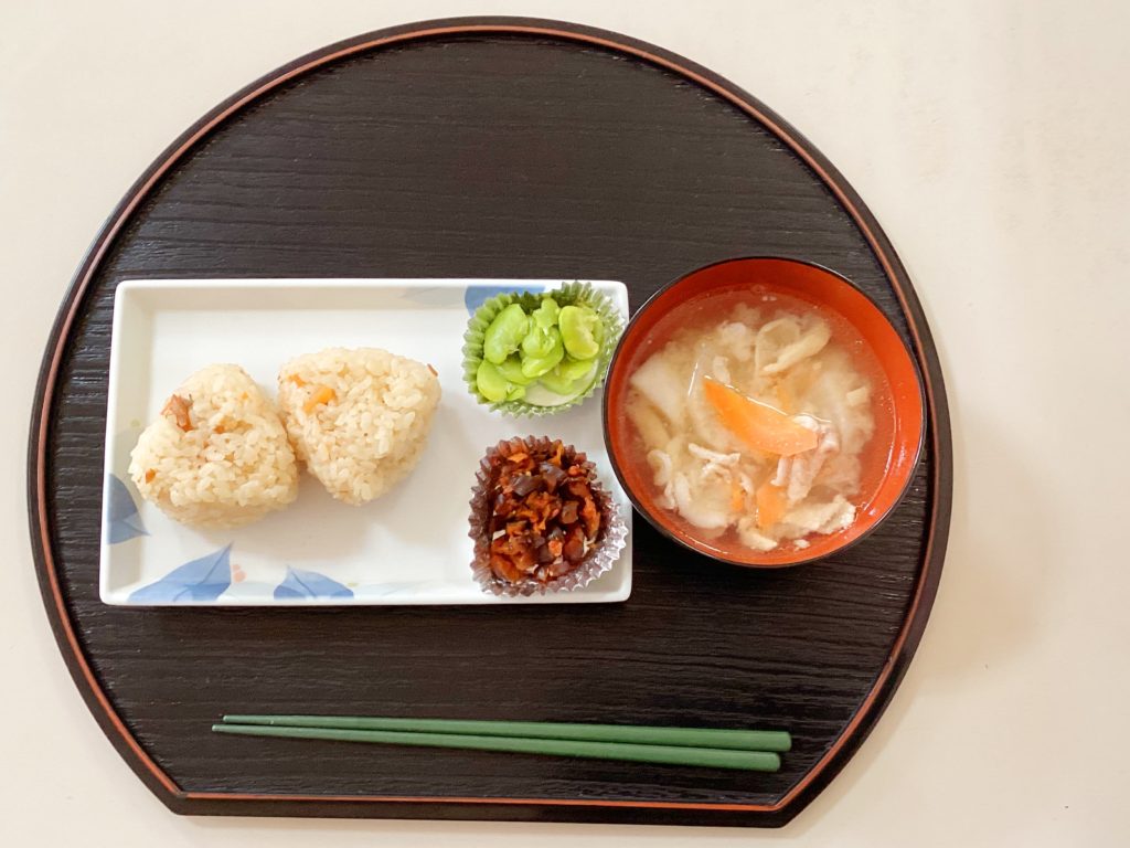 お昼は、炊き込みご飯をおにぎりにし、おやつにカップケーキを食べながらお祝いをしました。