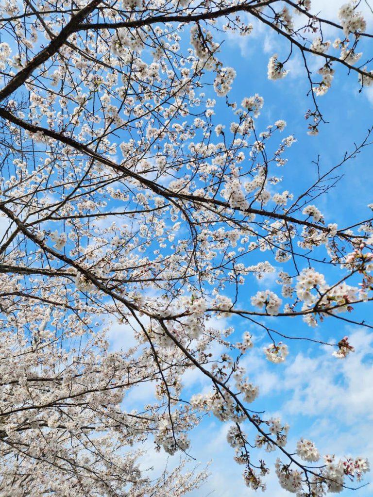 満開に咲いた桜の木の下をゆっくりとお散歩しました。