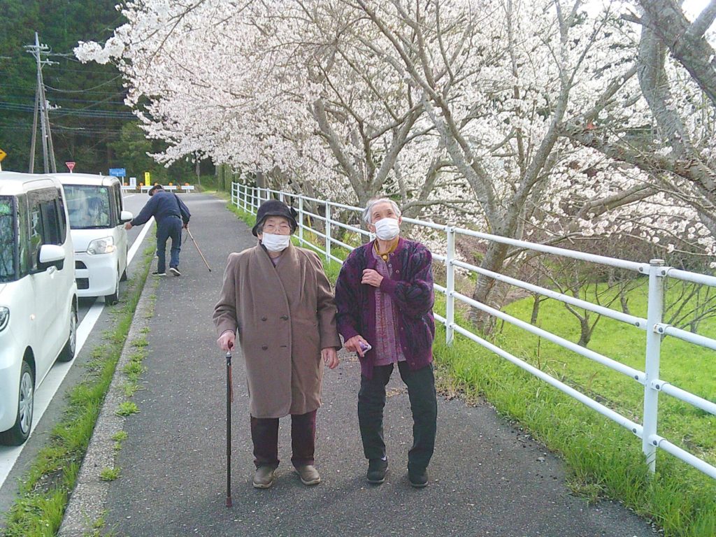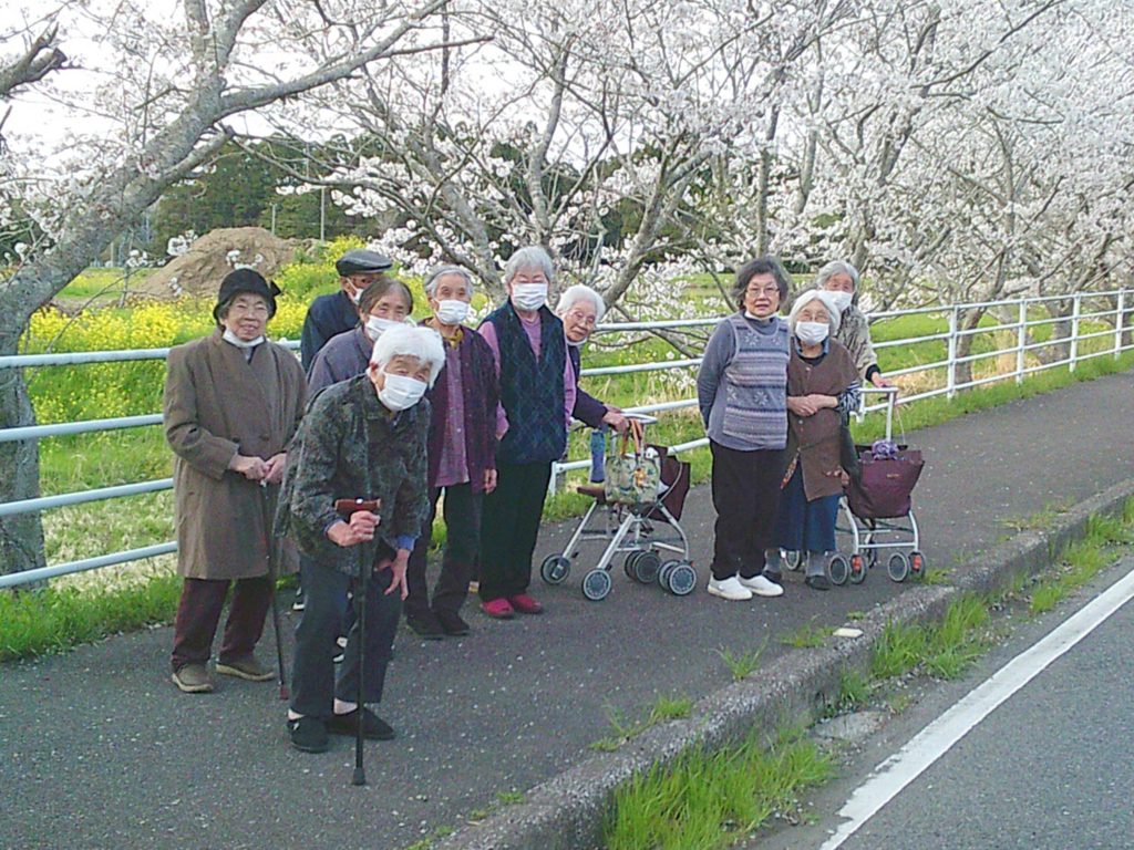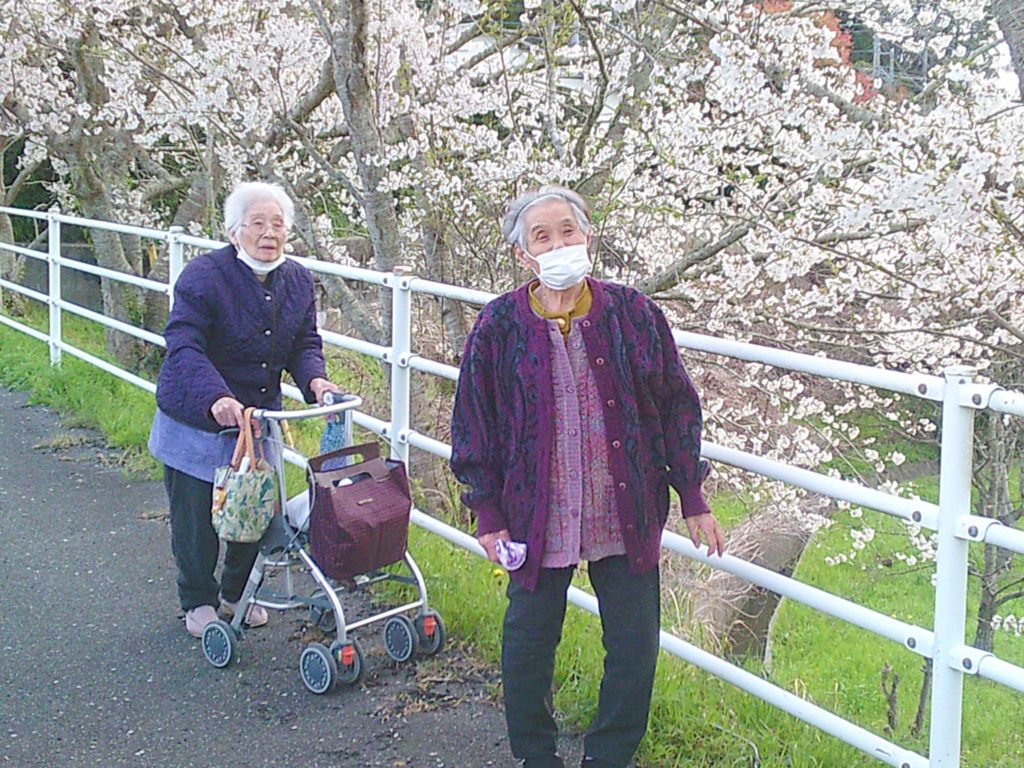 キレイな桜を眺めながらの贅沢なお散歩を楽しんで、ご利用者の皆様で記念撮影をしました。
