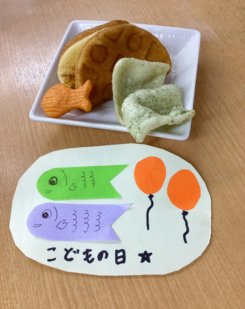 こどもの日、おやつに鯉のぼりのカードを添えました^^