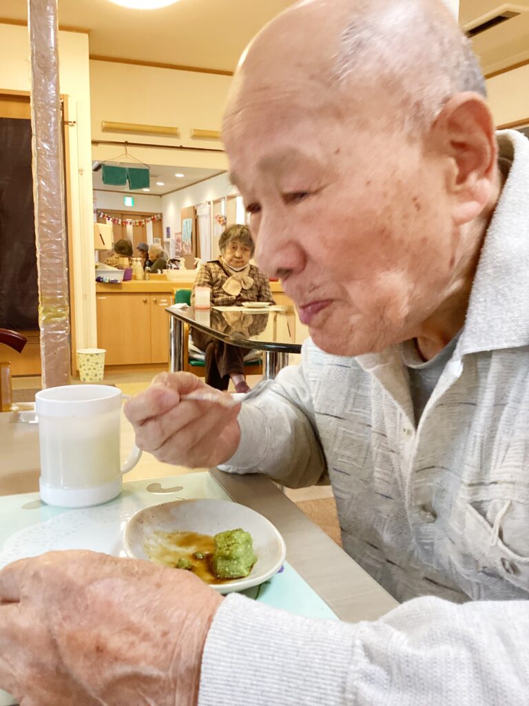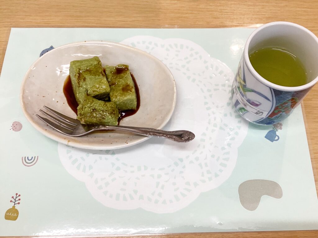 今月のおやつレクは、抹茶わらび餅をご利用者の皆様で作りました。