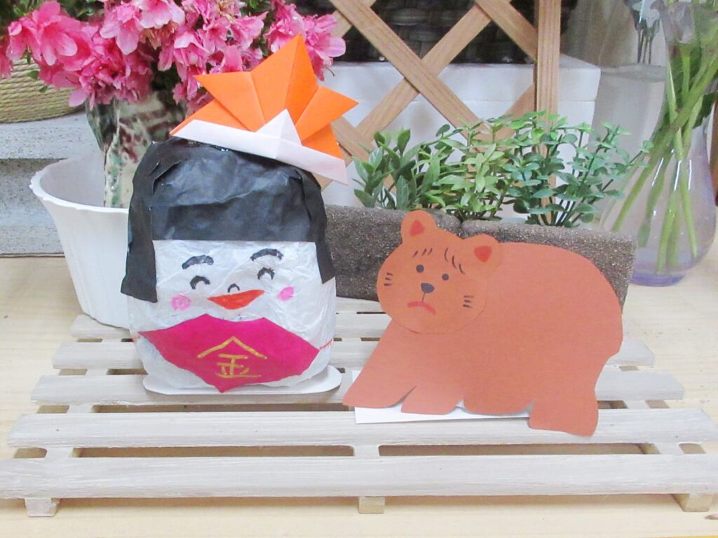 子供の日に金太郎を飾るのはやさしく力強く、母を大切にする良い子に育つようにとの願いが込められているそうです。