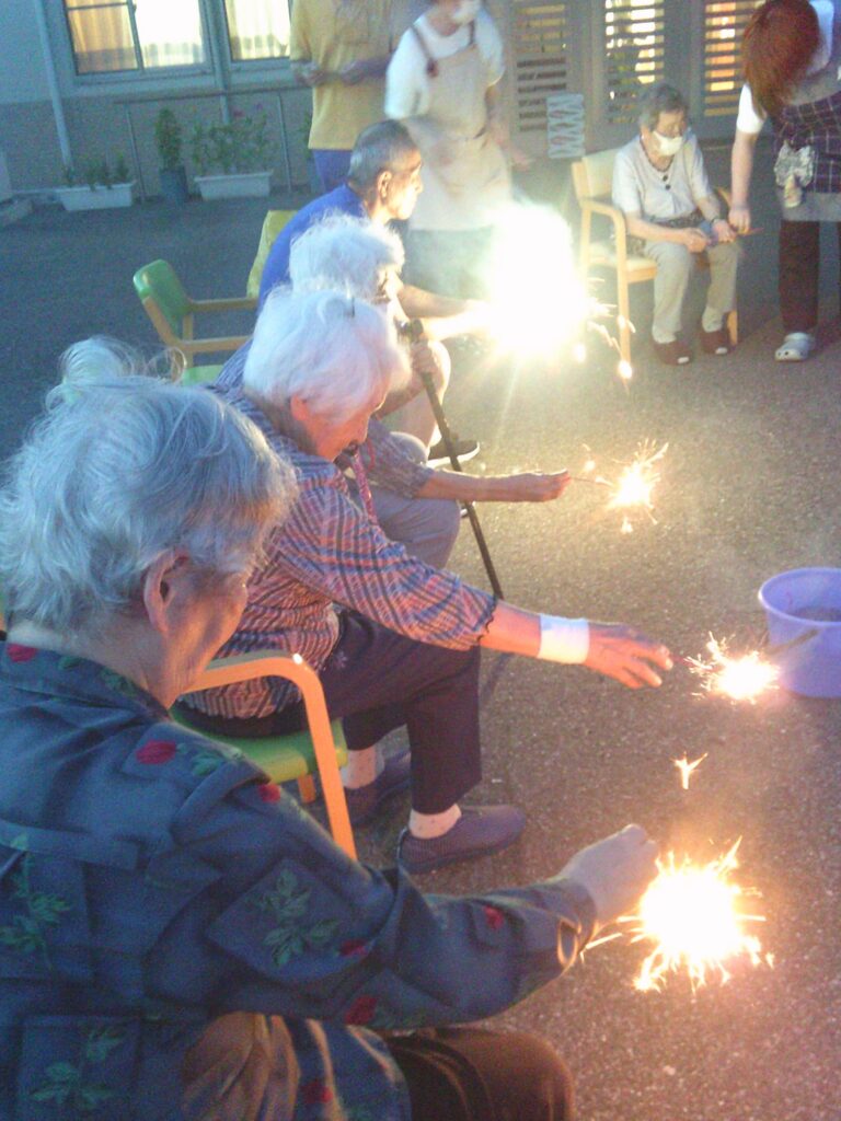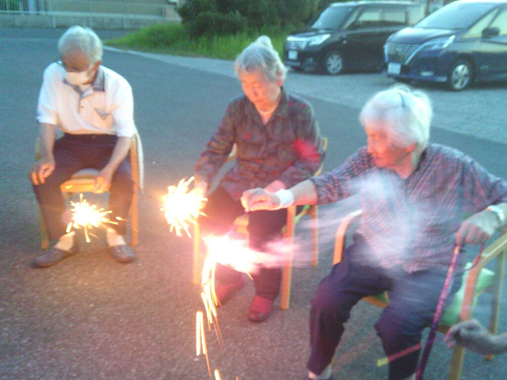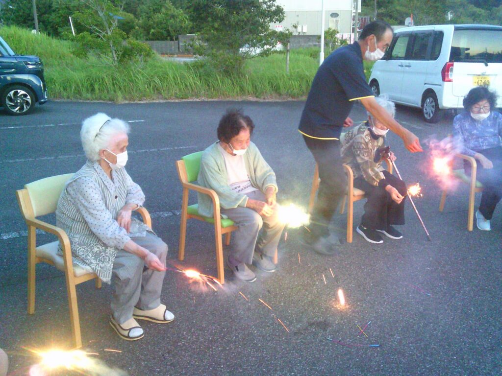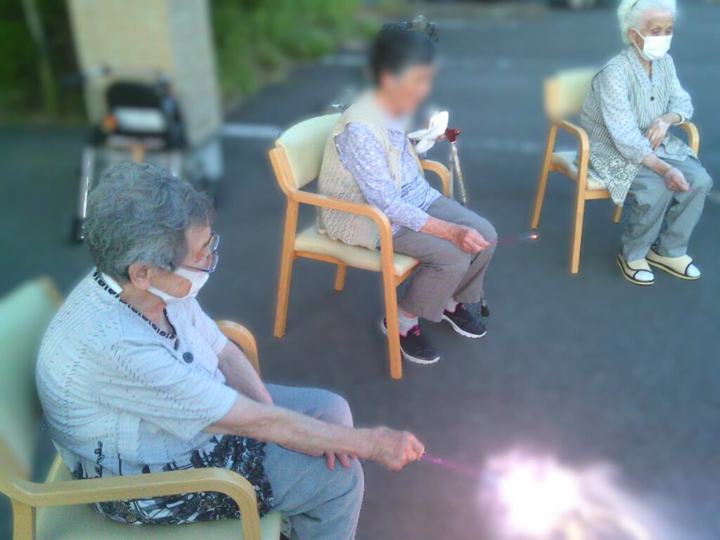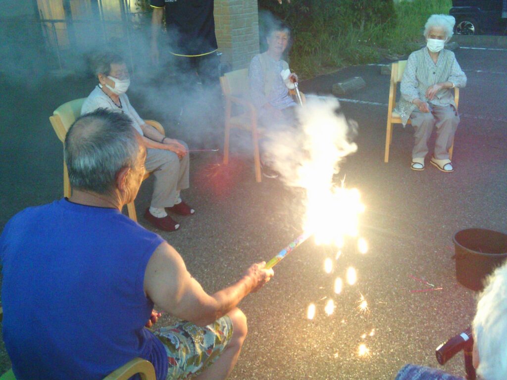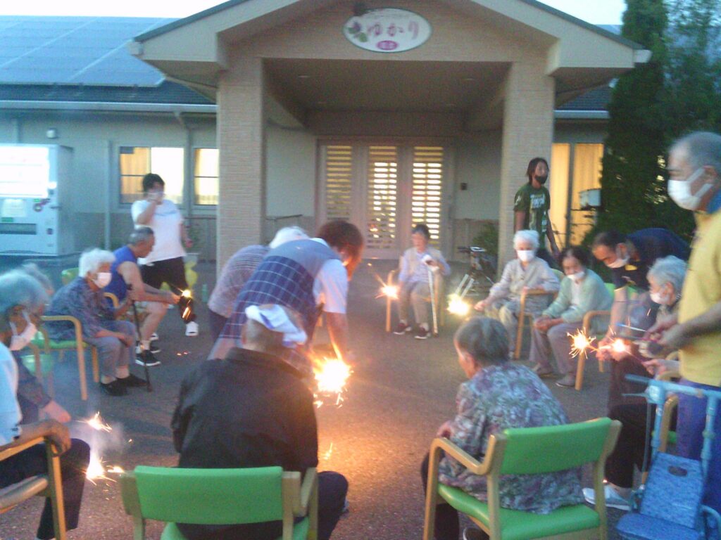 さて、今回の「ゆかり国吉」は、夏の風物詩である花火をご利用者の皆様と職員で楽しみました。