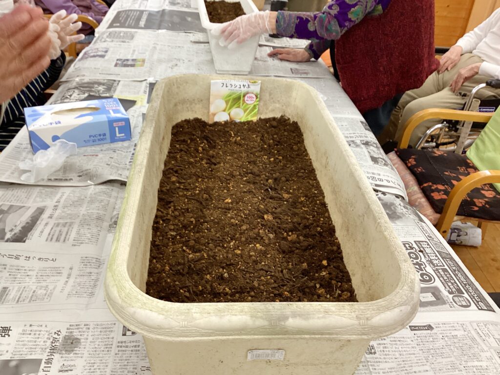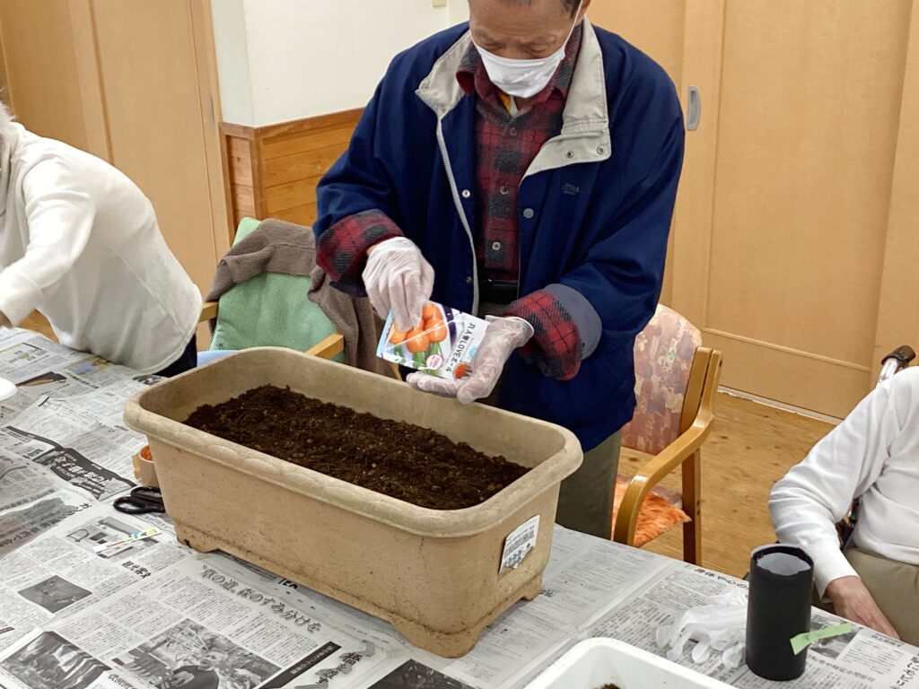 プランターには人参やカブ等のお野菜の種を撒きました!!