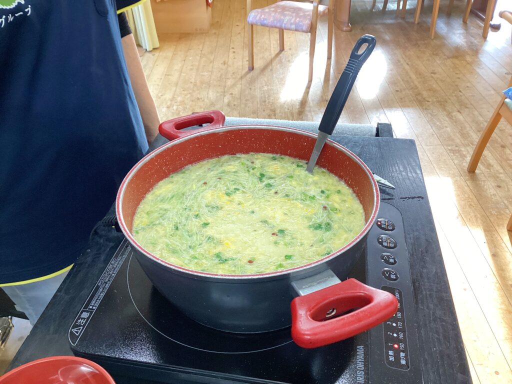 自分達で作ったかいわれ大根が入ったスープは大好評でした♪