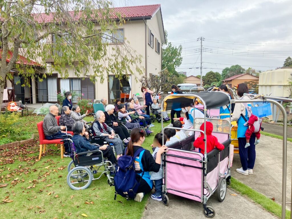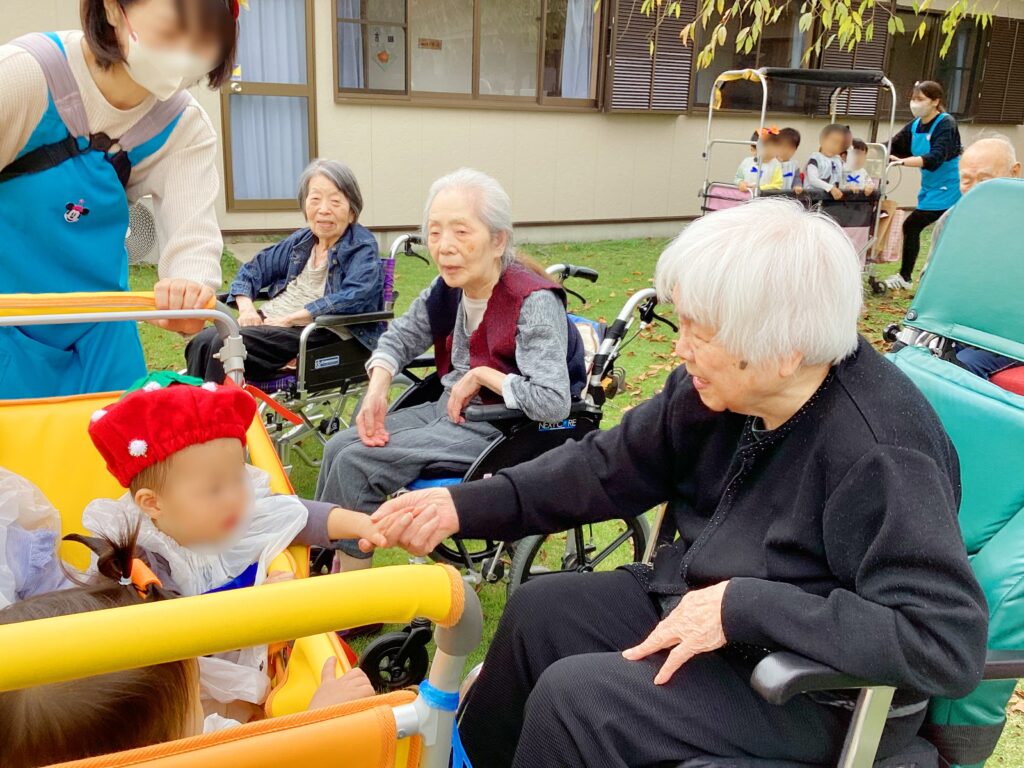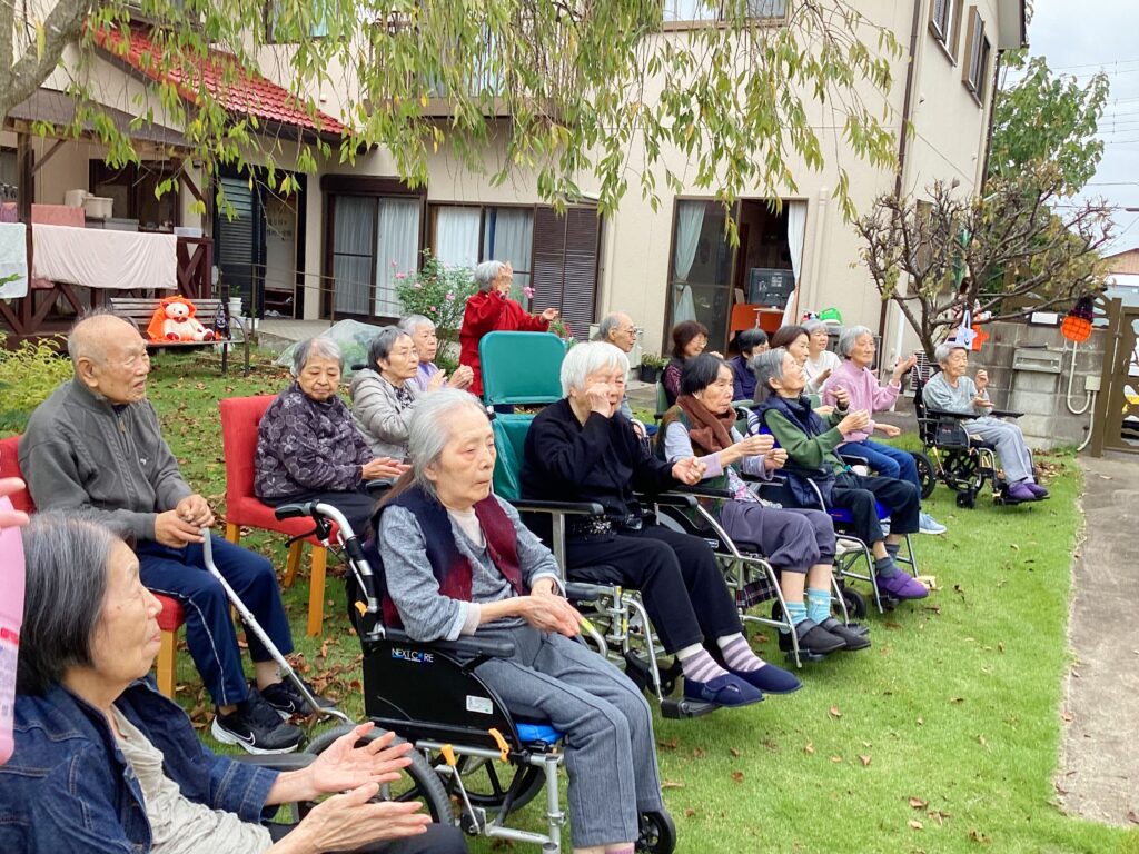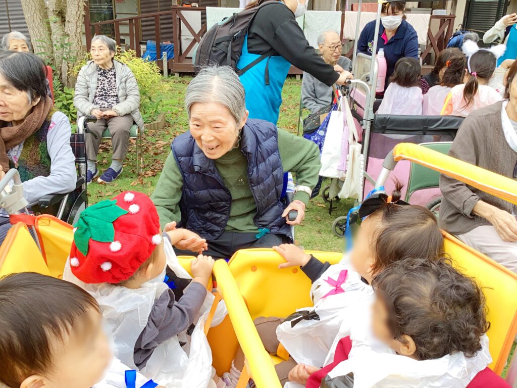 9月の敬老会に引き続き、近隣の保育園の園児たちがお化けに変装して遊びに来てくれました🎃