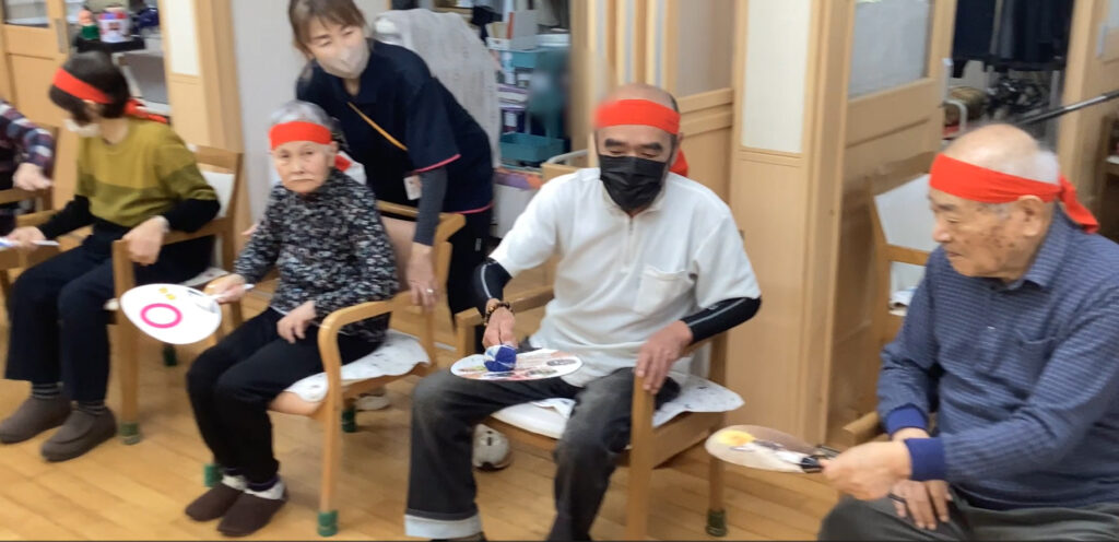 皆様投げるタイミングを見ながら投げていましたが、中にはなかなか手からお手玉が離れず…..