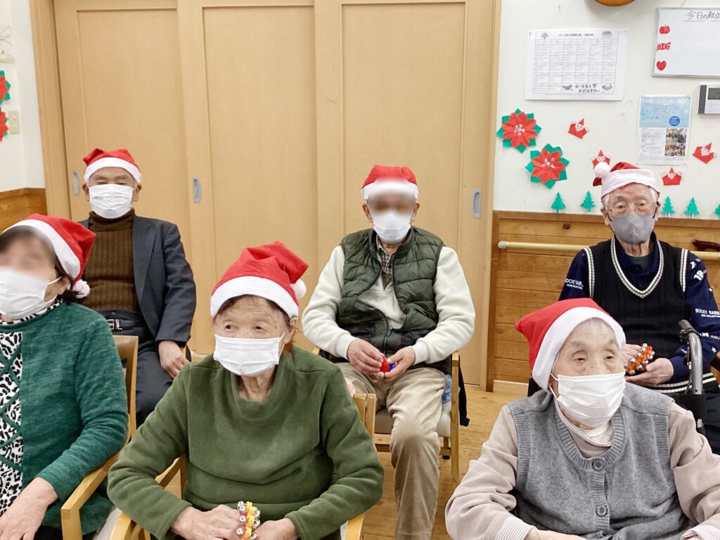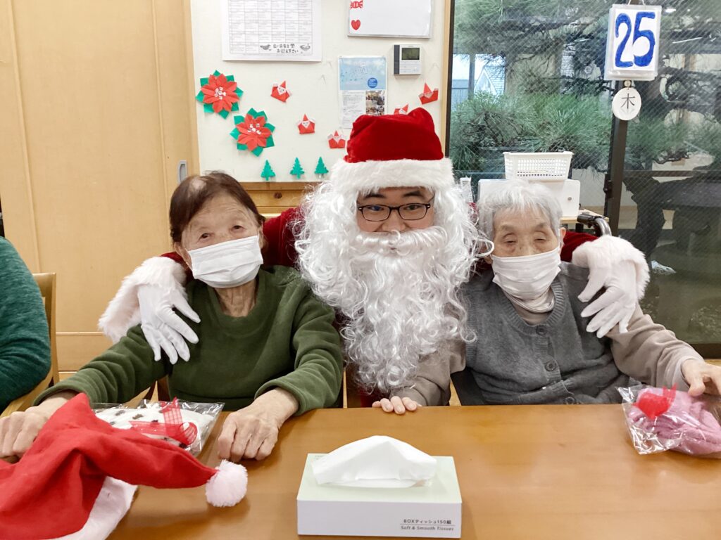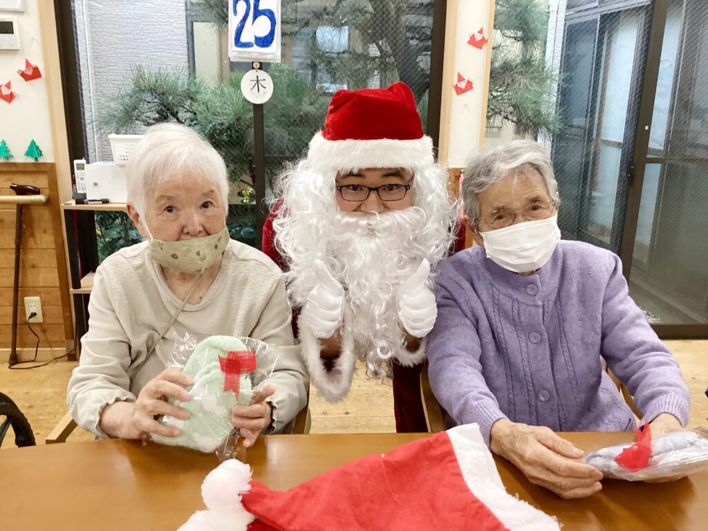 ご利用者の皆様はサンタさんからプレゼントをもらい、記念撮影しました♪