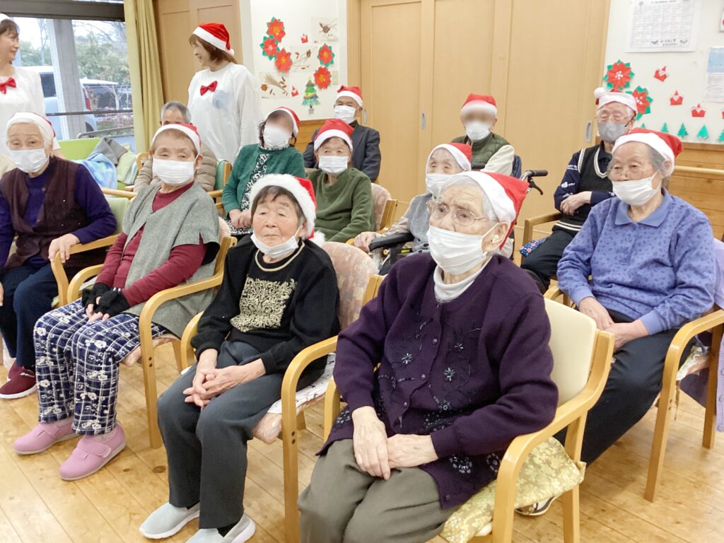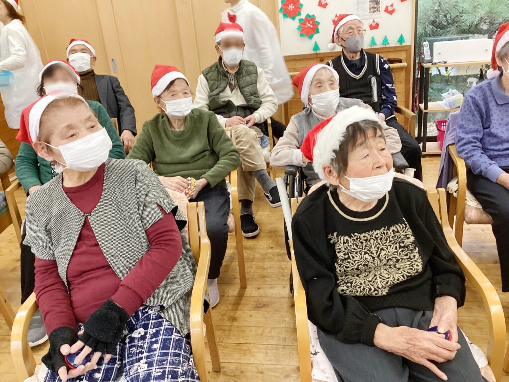 利用者様と「もろびとこぞりて」や「ジングルベル」を唄ったり、職員の出し物として「きよしこの夜」をソプラノとアルトで合唱しました!!