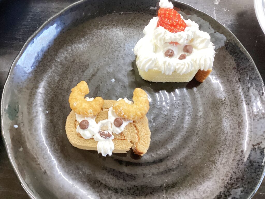 ジャンッ‼可愛いトナカイとサンタクロースのクリスマスケーキの完成です♪