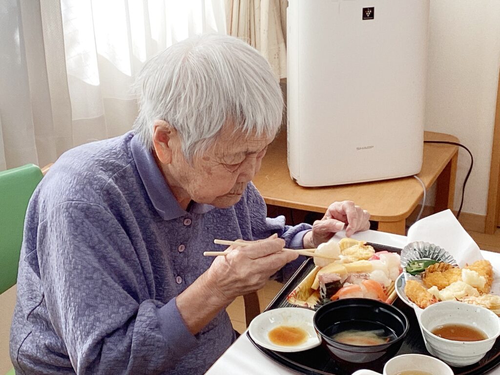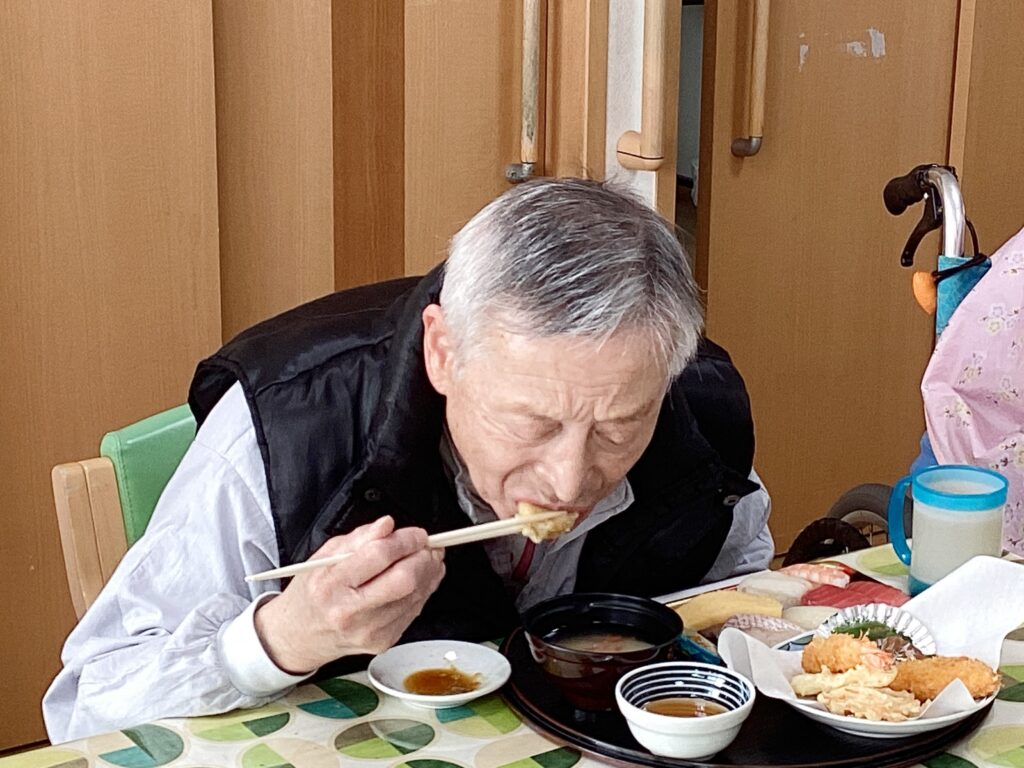 お寿司や揚げ物は好きな方が多く、美味しそうに召し上がられていました。
