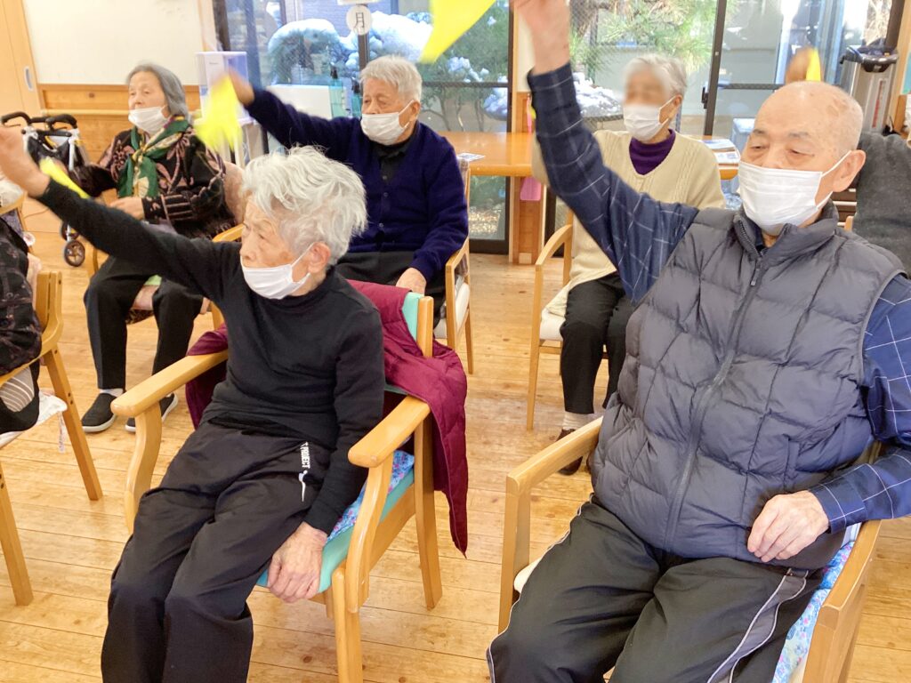 ご利用者の皆様で手を繋いでリズムをとりながら歌っていらっしゃいます♪