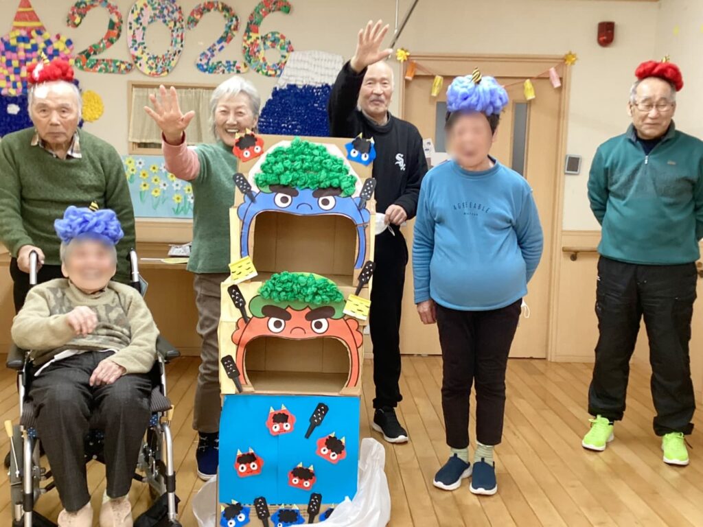ご利用者の皆様には可愛い鬼の被り物をしていただきました(^^♪