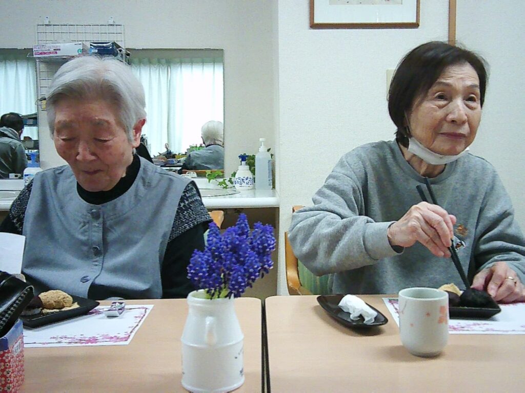 春のお楽しみ会は、スタッフ特製の「ぼたもち」を食べながら映画鑑賞です。