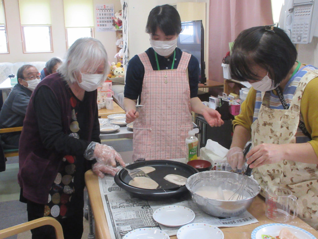 3月はご利用者の皆さんと桜もちを作って、自分の分は自分であんこをくるんで食べました。