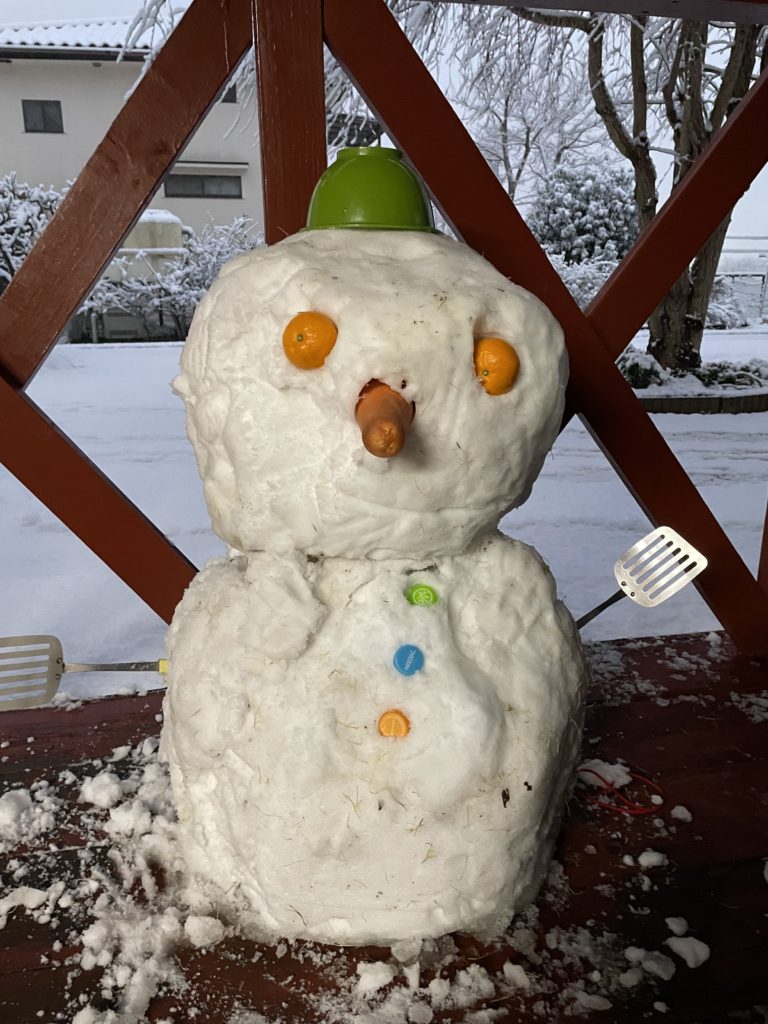 1月6日に久しぶりに雪が降りましたね。雪だるまを作りました。