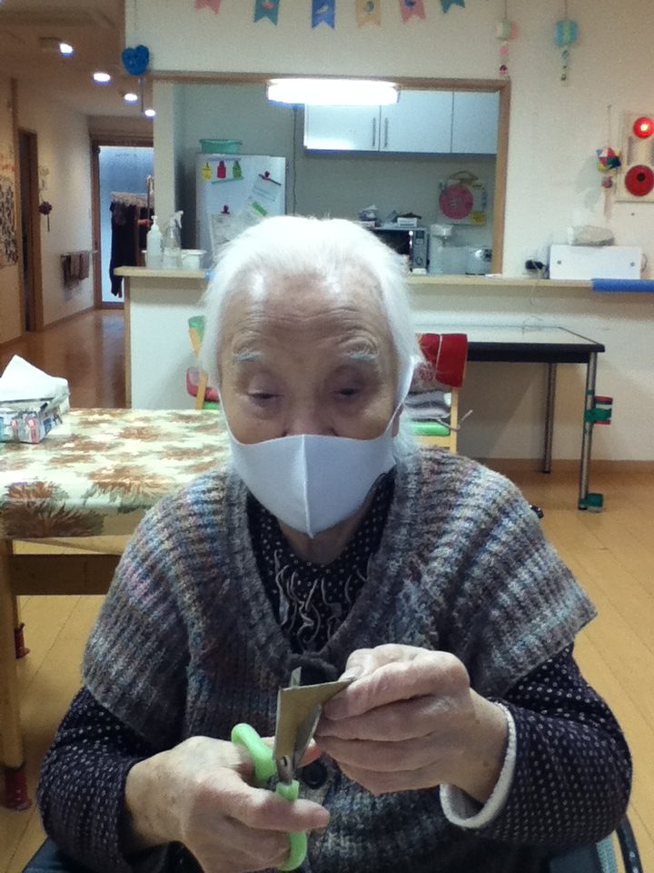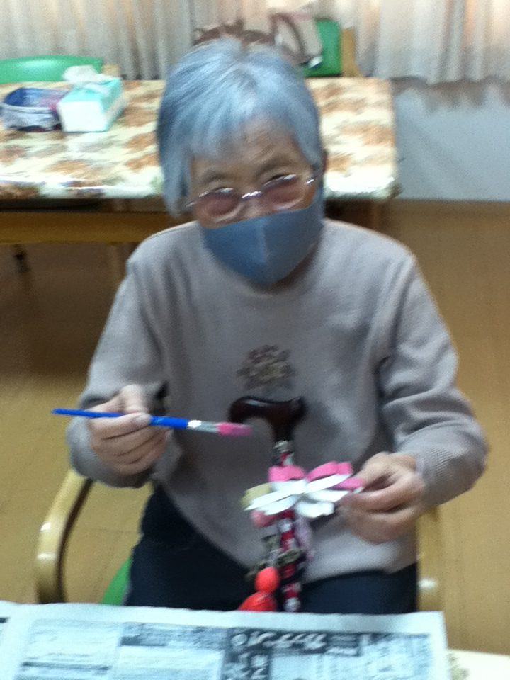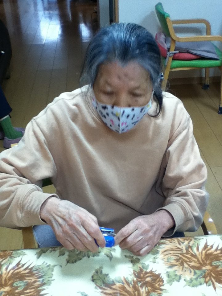 皆で切ったり、塗ったり、くっつけたりと出来る事をやって頂きました。