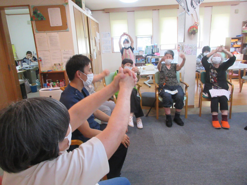 皆様一生懸命 1,2 1,2元気よく体操しますよ。
