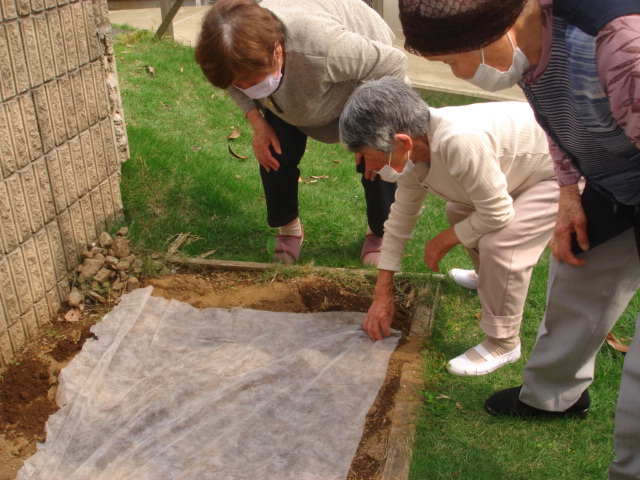 農家をやっているご利用者の皆様に助言をしてもらいながら…ビニールを被せて芽が出てくるのを待ちます。