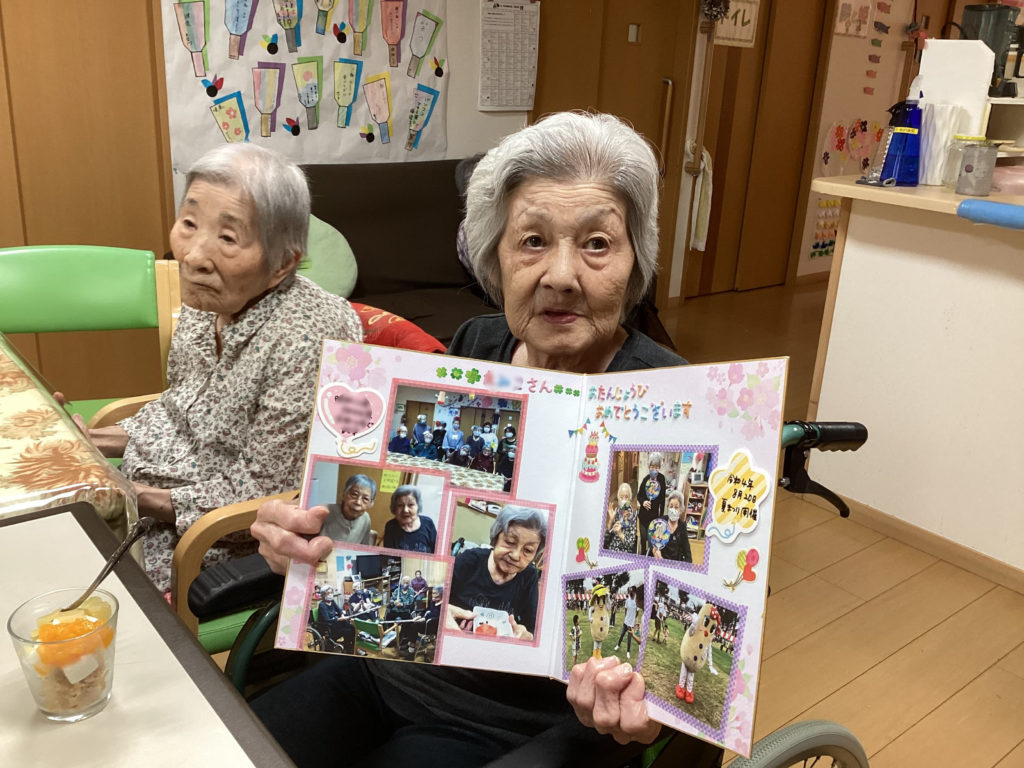おやつの時間にお誕生会を行いました。 最初は私の為にいいよ~とリビングに行くことをためらっていましたが、ひとまずリビングへ。 皆に「おめでとう~♡」と声をかけらると恥ずかしそうにされていました。 プレゼント🎁の色紙を渡すと「ありがとうございます、これからもよろしくお願いします♪」と笑顔で挨拶してくれました。