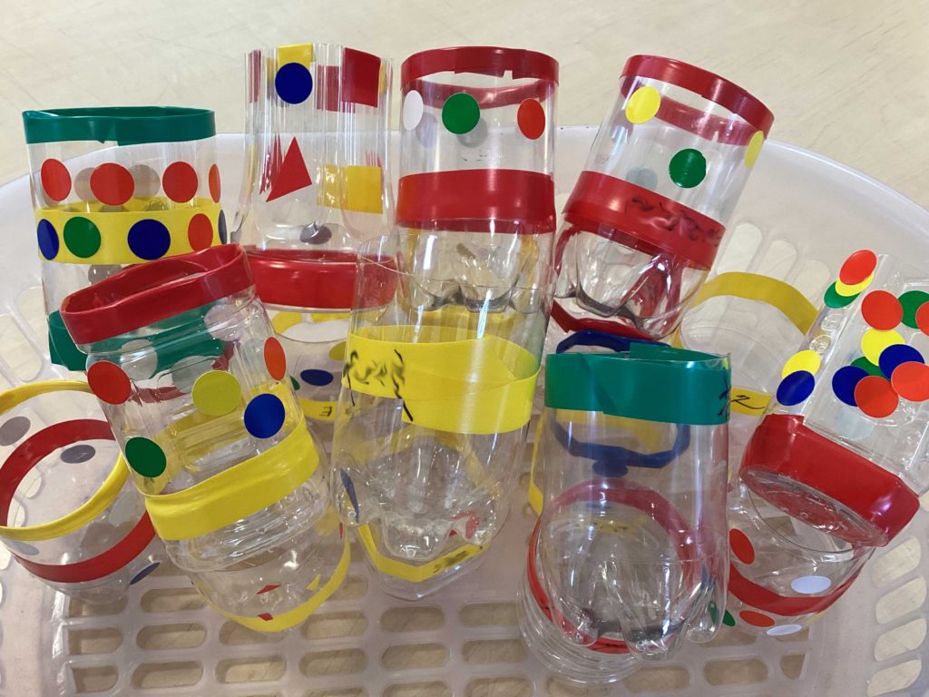 ジャーン!!ペットボトルを利用してチューリップを育てていきたいと思いまーす(^O^)ご利用者の皆様が自由にカラフルに仕上げてくれた植木鉢(#^.^#)