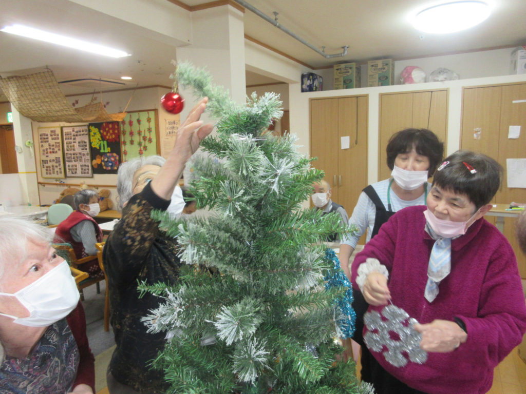 クリスマスツリーを皆さんで飾り付けました♪